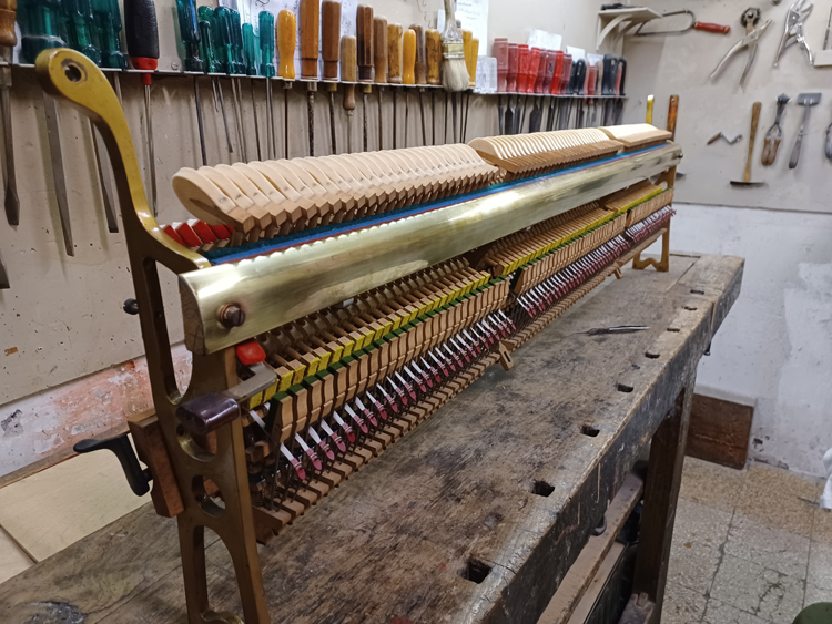 Entrare nel nostro laboratorio è come fare un viaggio nel tempo. Tra le tastiere lucide e i legni pregiati dei pianoforti, si respira un’atmosfera unica, fatta di passione, dedizione e rispetto per la tradizione. Mettiamo a tua disposizione tecniche artigianali di lunga tradizione per restaurare il tuo strumento e preservare la sua anima. Il nostro è più di un laboratorio di restauro. È il luogo dove la passione per la musica si unisce all’artigianalità e alla competenza, dove costruiamo e diamo vita a strumenti unici.